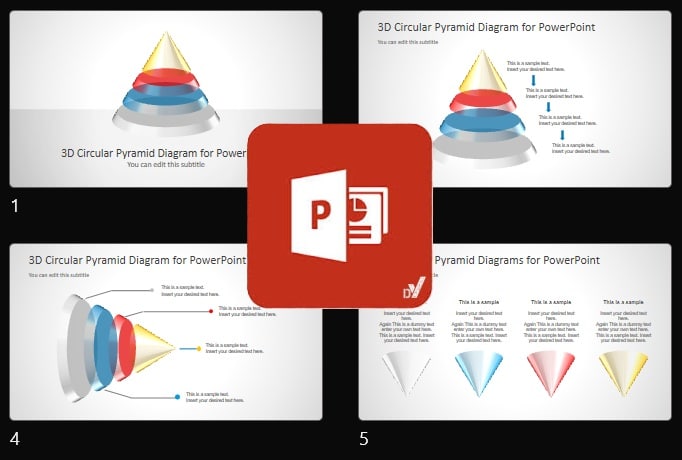 شما میتوانید از قالب هرم دایره سه بعدی پاورپوینت برای نمایش مدلها و استراتژیهای تجاری، همچنین برای توضیح مفاهیم پیچیده به روشی ساده و نیز برای اهداف آموزشی استفاده کنید. همچنین میتوانید از آن در تجسم دادهها و اینفوگرافیکها استفاده کنید.